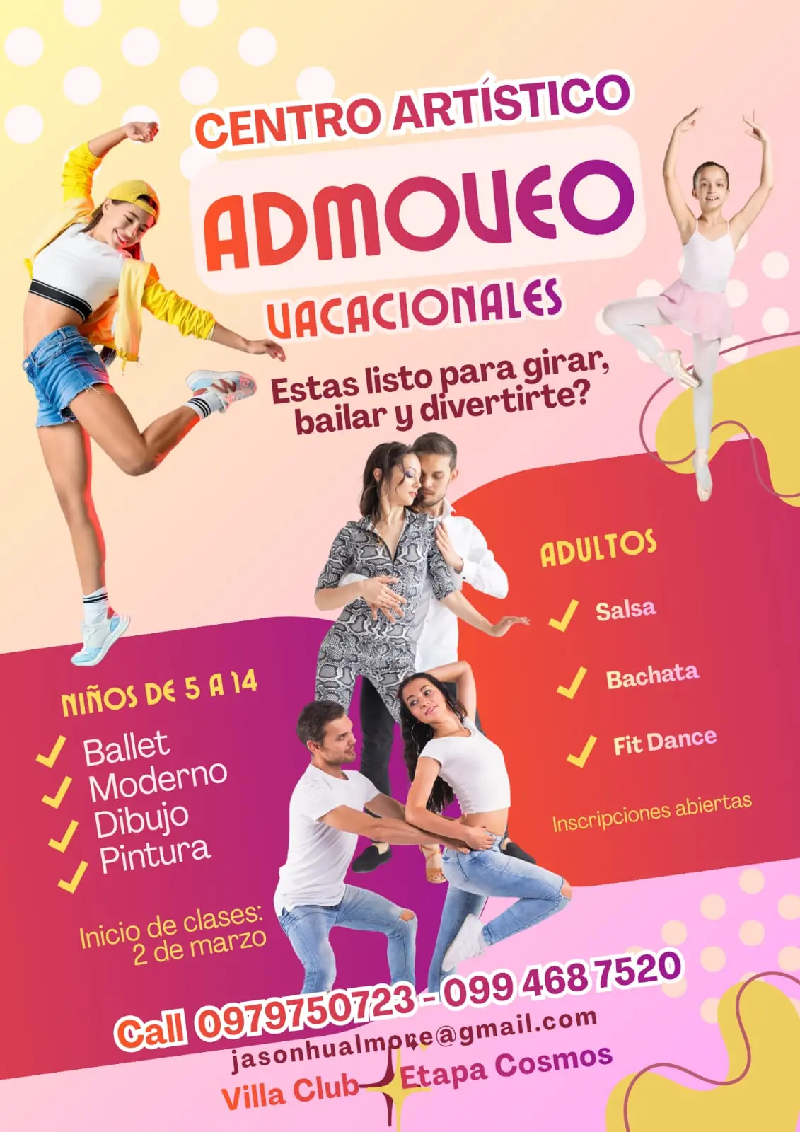 ✅ Para niños : Ballet, Moderno y Arte.